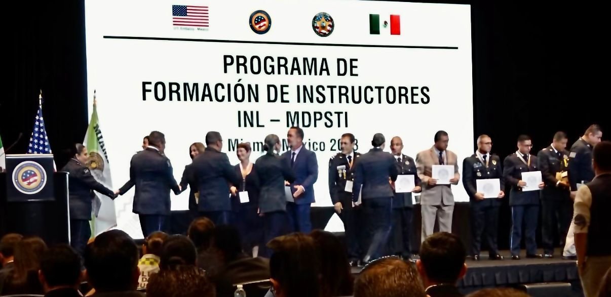 - La Oficina Internacional de Antinarcóticos y Procuración de Justicia (INL) y el Instituto de Formación de Miami-Dade efectuaron la entrega de certificados a 15 Policías de la Capital potosina que concluyeron el curso de capacitación, como formadores de instructores en policía de proximidad, atención a víctimas, violencia de género y asuntos internos.