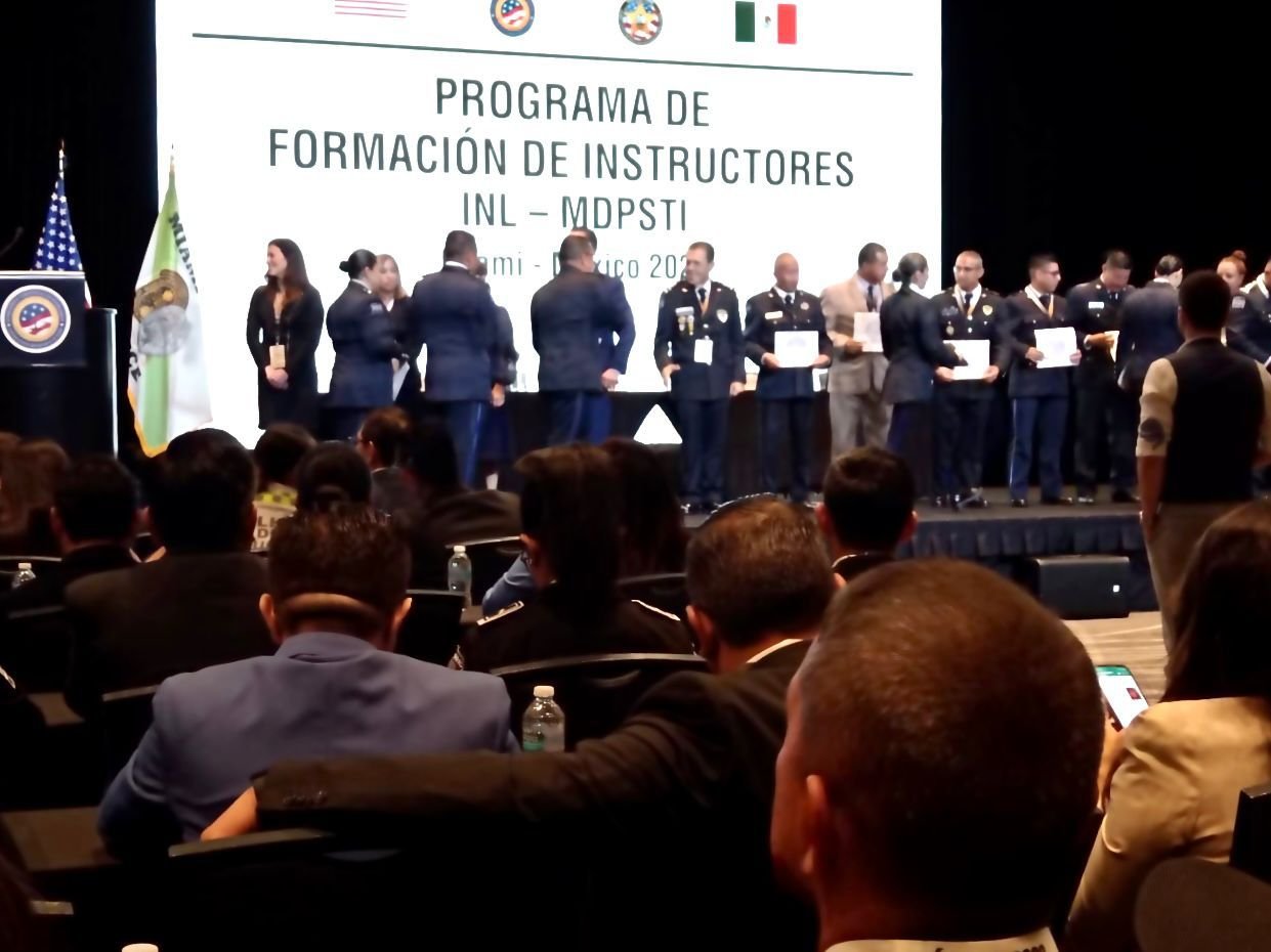 Con el compromiso de fortalecer el desarrollo académico de las y los policías municipales de la Secretaría de Seguridad y Protección Ciudadana (SSPC), dentro del programa de fortalecimiento institucional, este viernes 25 de agosto, un total de 15 elementos participaron en la ceremonia de entrega de reconocimientos del Programa de Formación de Instructores, convocado por la Embajada de los Estados Unidos de América, a través de la oficina de INL en México y el Instituto de Formación de Miami-Dade.