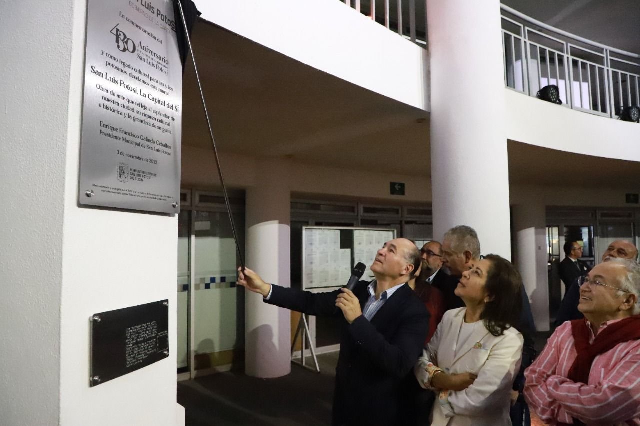 El presidente municipal de San Luis Potosí, Enrique Galindo Ceballos, señaló que el mural es un legado para todos los potosinos que habitan La Capital del Sí.