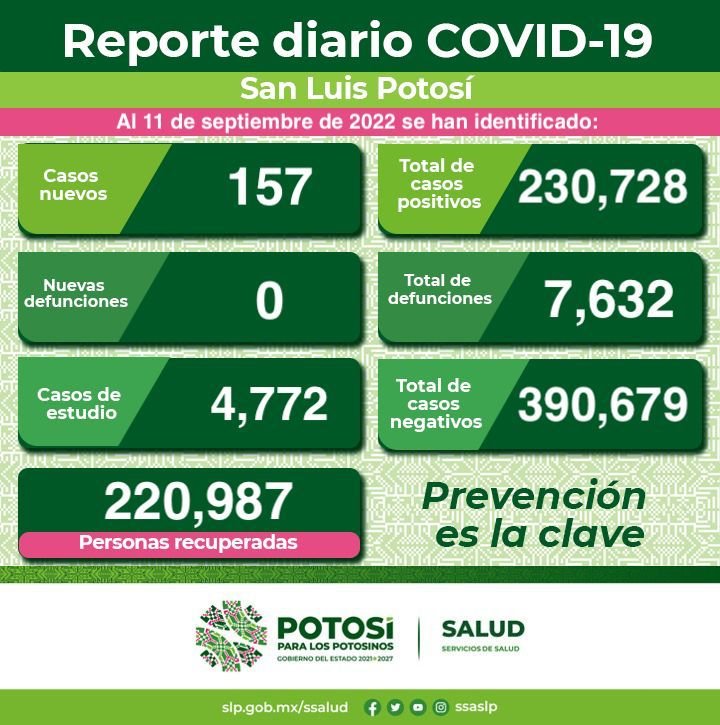 En la Jurisdicción Sanitaria I se detectaron 140 de los nuevos casos; dos, en la Jurisdicción Sanitaria II de Matehuala; seis, en la Jurisdicción Sanitaria IV de Rioverde; seis, en la Jurisdicción Sanitaria V de Ciudad Valles; uno en la Jurisdicción Sanitaria VI de Tamazunchale; ningún nuevo contagio en personas residentes de otra entidad y en las jurisdicciones sanitarias III de Villa de Pozos y VII de Tancanhuitz.