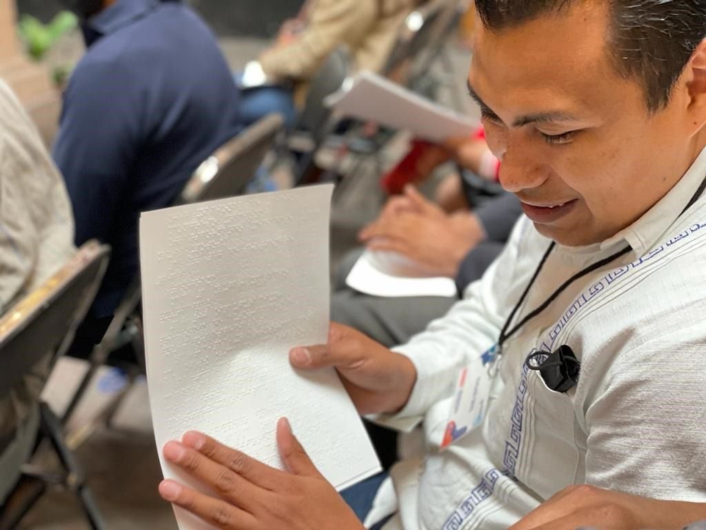 Una de las maneras para comunicarse con las personas ciegas o débiles visuales, además del habla, es por medio de la lecto escritura «Braille», un sistema que a través de pequeños puntos en relieve, permite al usuario identificar los códigos específicos para las letras y números que les brinden información, lo cual se brinda en el taller que es teórico y práctico a fin de que quien lo curse, tenga la capacidad de escribir y leer en este sistema.