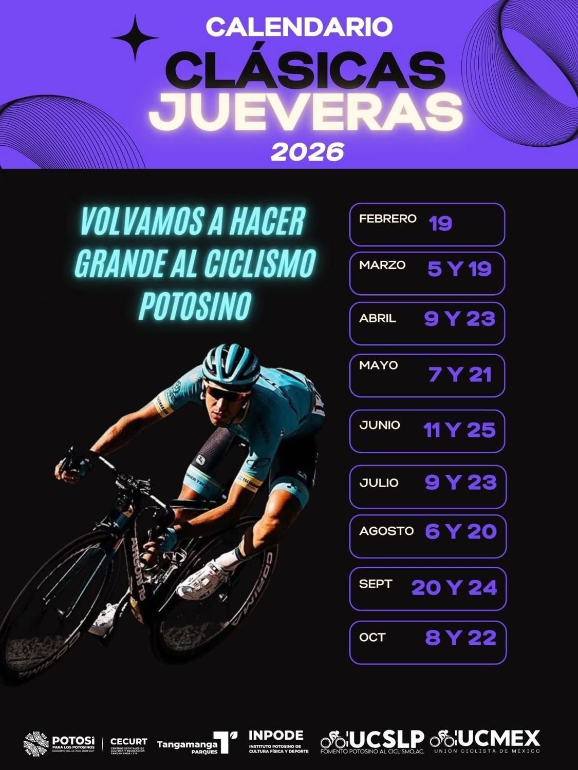 San Luis Potosí fortalece el ciclismo de ruta con la presentación del Calendario de Clásicas Jueveras 2026, una iniciativa impulsada por la Asociación Fomento Potosino Ciclismo y avalada por la Unión Ciclista de México (UCMEX), con el objetivo de seguir promoviendo el deporte sin límites en el estado.