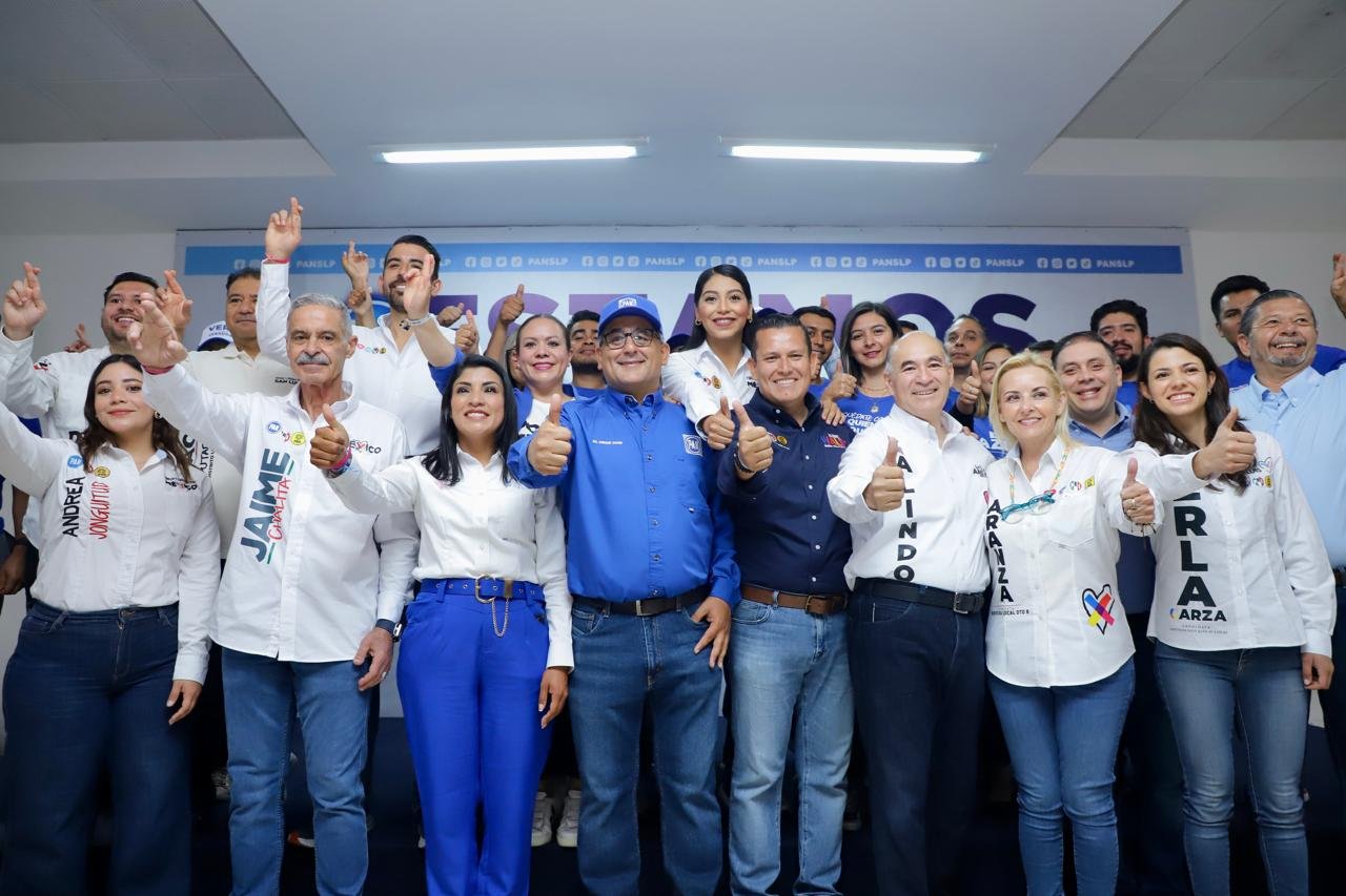 En rueda de prensa en la sede del PAN Estatal, Enrique Galindo Ceballos, candidato a la Presidencia Municipal de San Luis Potosí por la coalición Fuerza y Corazón por San Luis, junto con todos los candidatos a puestos de elección popular en la ciudad, enfatizó que esta campaña se ha desarrollado con mucho trabajo y así seguirá, como un solo esfuerzo para conquistar la confianza y el voto ciudadano que permita consolidar los avances obtenidos en la capital del estado.
