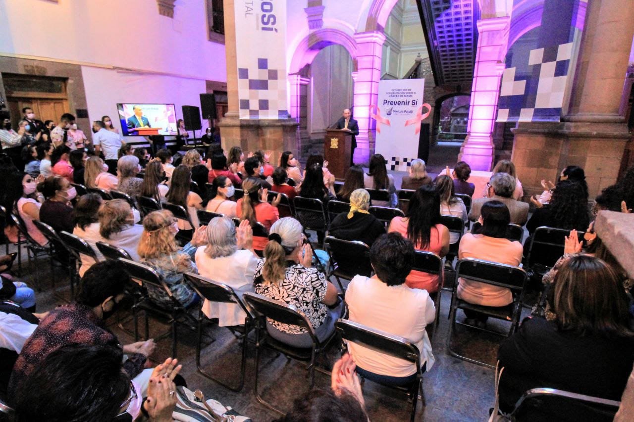 Finalmente, en su intervención el Presidente Municipal de San Luis Potosí, Enrique Galindo Ceballos, hizo público el compromiso de su administración para con las mujeres potosinas de acompañarlas y atenderlas cuando de enfrentar esta enfermedad se trate, y señaló: “Hoy 19 de octubre, yo quiero hacer un compromiso con las mujeres, desde luego del municipio, pero también con todas las mujeres que convergen en la capital del estado, para que puedan recibir a través del DIF, servicio médico y atención de estudios para enfrentar esta terrible enfermedad que es vencible si se autoexplora”