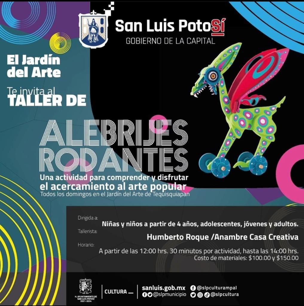 Además, la casa de Cultura Anambre oferta el Taller de Alebrijes Rodantes, con el maestro Humberto Roque, el cual se realiza todos los domingos desde las 10 de la mañana, y que también tiene el objetivo de enriquecer el conocimiento de niños y jóvenes con pensamiento artístico en torno a las manifestaciones populares y mediante una estética transversal.