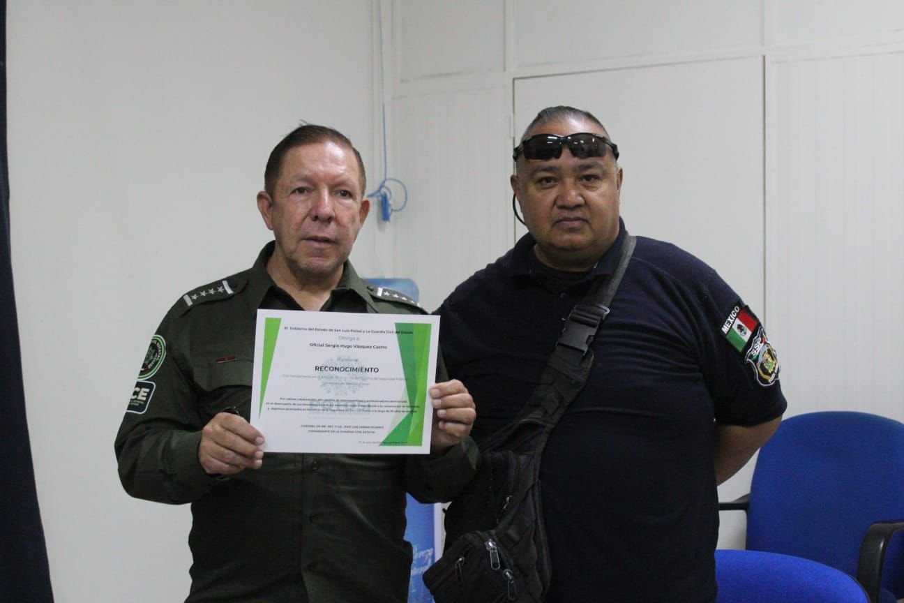 El día de hoy, dos hermanos de sangre azul culminan su carrera policial con honores, uno de ellos es el Licenciado José Juan Espinoza Aguilar quien inició en el año de 1992 al servicio de la Policía Estatal de San Luis Potosí. Es parte de la generación 14, egresó como Policía C y se retira con el grado de Primer Oficial.