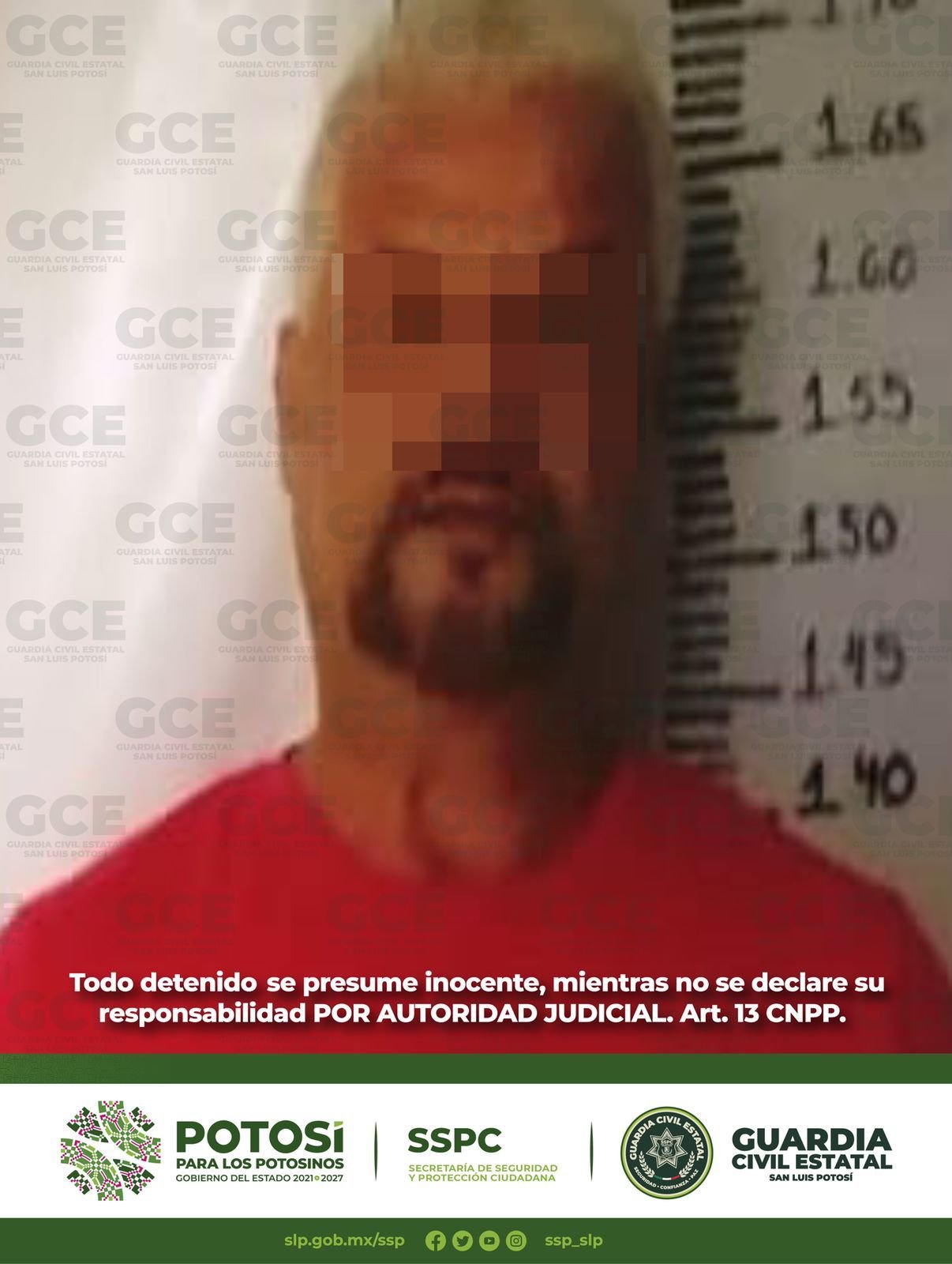 En el Municipio de Tamazunchale, los oficiales de la GCE llevaron a cabo la detención de Jorge de 56 años de edad, después de que en un filtro de revisión en el eje Estatal Tamazunchale-San Martín, se le asegurara un vehículo marca Nissan, tipo Versa, modelo 2017, con placas del Estado de México, el cual contaba con reporte de robo de Tlalnepantla en el mes de marzo del año 2021.