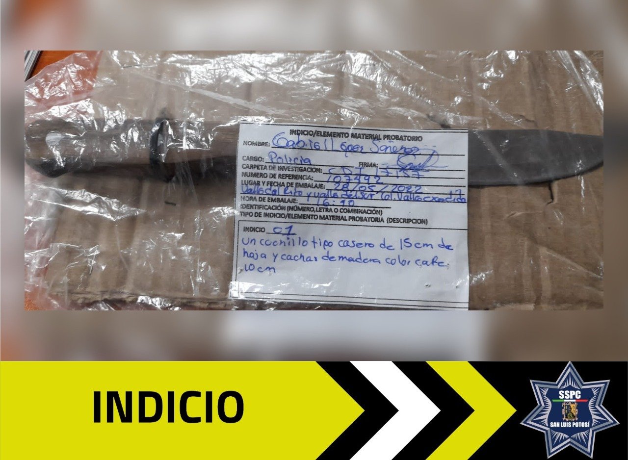 De esta manera se inició una persecución por algunas calles de la zona y finalmente se logró la detención del implicado en las calles de Valle del Rio y Valle del Sur. Al momento de la revisión preventiva de seguridad, le fue encontrado fajado en la cintura un cuchillo casero con 15 centímetros de hoja y cacha de madera color café.