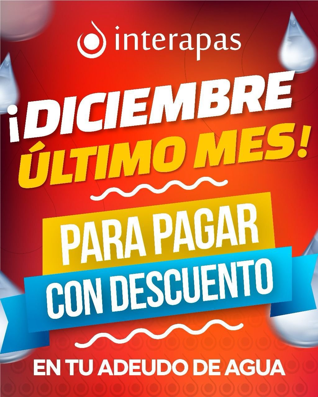 INTERAPAS invita a las personas con adeudos a no dejar pasar esta última oportunidad, a fin de cerrar el año con sus cuentas al corriente y evitar que los montos sigan incrementándose.