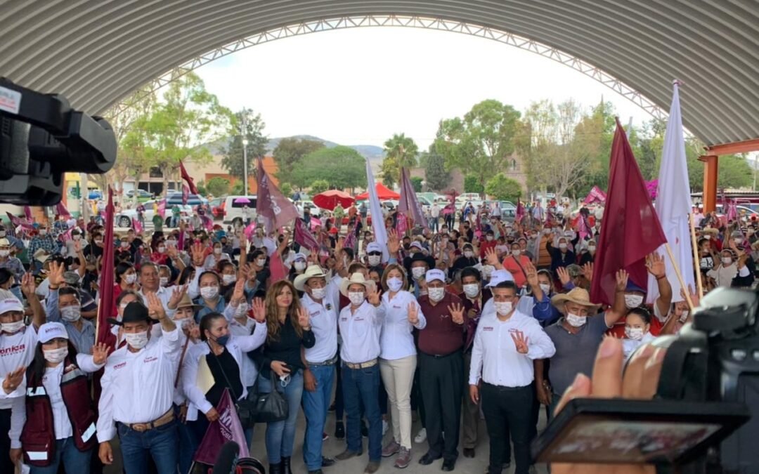 Mónica Rangel les agradeció su apoyo y el compromiso de sus votos y les manifestó que también para poder lograr el mayor número de recursos, habrá que apoyar a los candidatos a diputados locales y federales de MORENA, porque ellos son los que nos autorizarán los recursos para las obras, acciones y programas, sin olvidar a quienes compiten por las alcaldías, porque también a ellos se les impulsará desde el Gobierno del Estado.