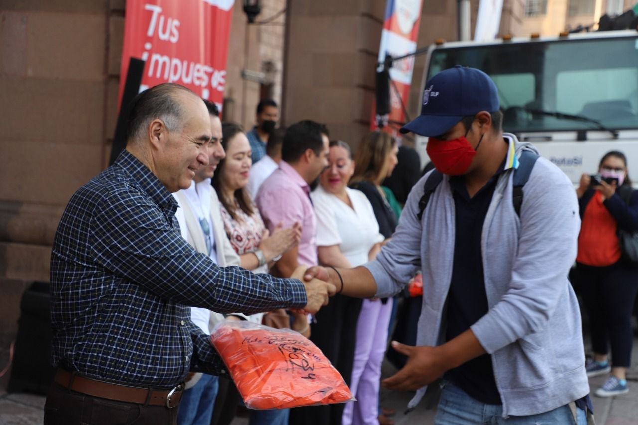 En un reconocimiento por la obtención del premio internacional Escoba de Platino, el alcalde Enrique Galindo Ceballos felicitó al personal de la coordinación de Aseo Público municipal y les entregó uniformes.