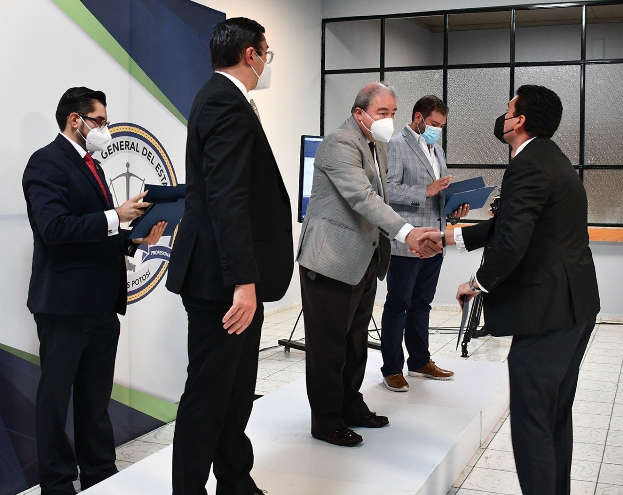 La Fiscalía General del Estado de San Luis Potosí (FGESLP) realizó la entrega de constancias a 13 servidores públicos pertenecientes a la institución de procuración de justicia, mismos que participaron y aprobaron el curso “Rendición de Cuentas y Registro del Delito”, impartido por el Observatorio Nacional Ciudadano (ONC).