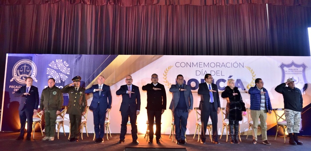 SLP. -En el marco de la Conmemoración del Día del Policía, la Fiscalía General del Estado (FGE) y la Dirección General de Métodos de Investigación, reconoció la labor de su personal y condecoró a agentes destacados de la corporación.