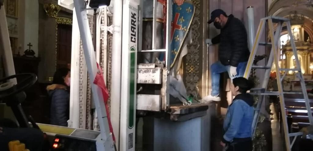 El traslado de regreso estará a cargo de personal de Patrimonio Cultural, Conservación y Proyectos de la Unidad de Gestión del Centro Histórico, se realiza este jueves 1 de diciembre, en coordinación con la Dirección de Cultura Municipal y con el apoyo y seguimiento del Centro INAH SLP y la Secretaría de Cultura del Gobierno Federal, lo que garantiza el resguardo adecuado de la escultura del Santo Patrono de la Capital de San Luis Potosí.