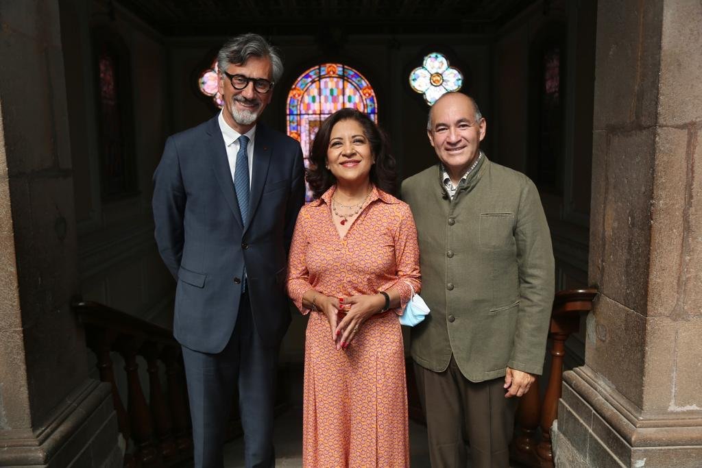 Frente al vitral del Escudo de Armas de la Ciudad, mismo que tiene como figura principal a San Luis Rey de Francia, el alcalde Enrique Galindo Ceballos dio la bienvenida al diplomático y a su comitiva, para luego mostrarles la belleza arquitectónica de la otrora “Casa Real”.