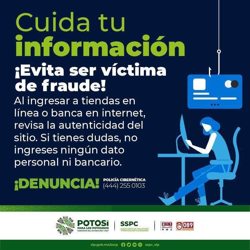 Hay registro de que estos casos a nivel nacional y en San Luis Potosí están incrementado, por lo cual es necesario adoptar medidas preventivas, y en caso de ser víctimas solicitar el apoyo inmediato de las autoridades, puntualizó Guadalupe Zárate, Policía Especializado del Centro de Coordinación, Control, Comando, Comunicación, Cómputo, Información e Inteligencia (C5i2).