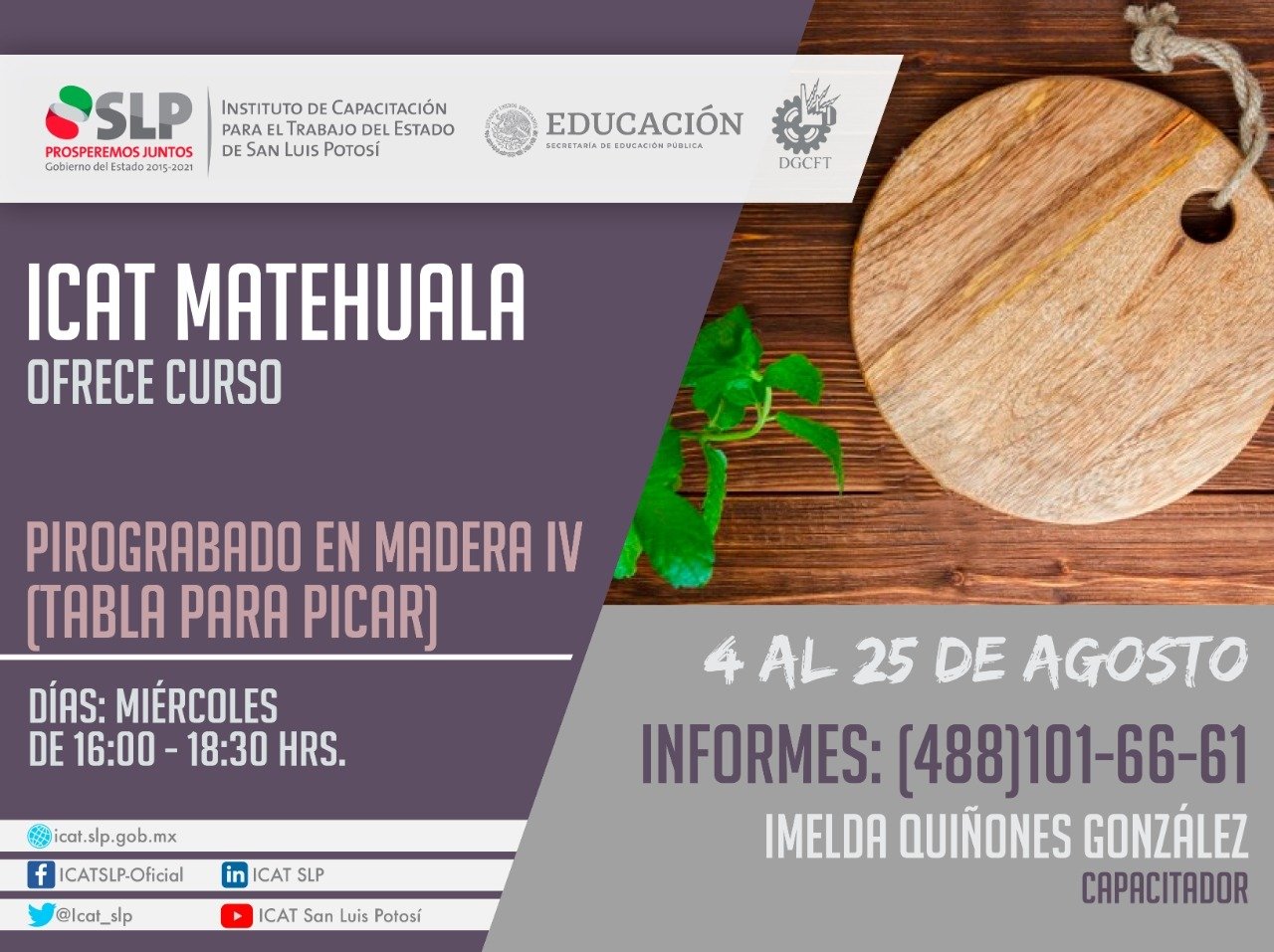 Para continuar con su programa de fortalecimiento de habilidades y conocimientos con el objetivo de que las y los participantes puedan insertarse en el ámbito laboral o emprender algún negocio, el Instituto de Capacitación para el Trabajo (ICAT), pone a disposición su oferta de cursos a realizarse durante el mes de agosto en Matehuala.