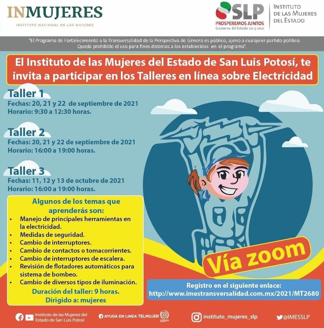 Con el propósito de contribuir al empoderamiento económico con diversas capacitaciones prácticas en oficios no tradicionales para las mujeres, el Instituto de las Mujeres del Estado (IMES), a través del área de Transversalidad, invita a los talleres de plomería y electricidad que iniciarán el próximo lunes 13 de septiembre, informó Erika Velázquez Gutiérrez, directora general de la dependencia.