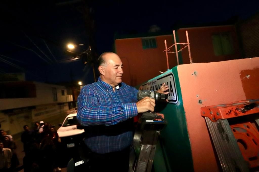 Este miércoles, en la colonia San Ángel, el Alcalde Enrique Galindo Ceballos dio inicio a la renovación de placas de nomenclatura de calles y avenidas de la ciudad, en un esfuerzo conjunto entre empresas instaladas en la ciudad y el Gobierno de la Capital: “La sociedad hace una parte, la iniciativa privada pone otra cosa y hemos avanzado enormemente en los programas municipales porque logramos integrar a la sociedad civil organizada. Lo vamos a seguir haciendo así, porque nos ha funcionado muy bien”.