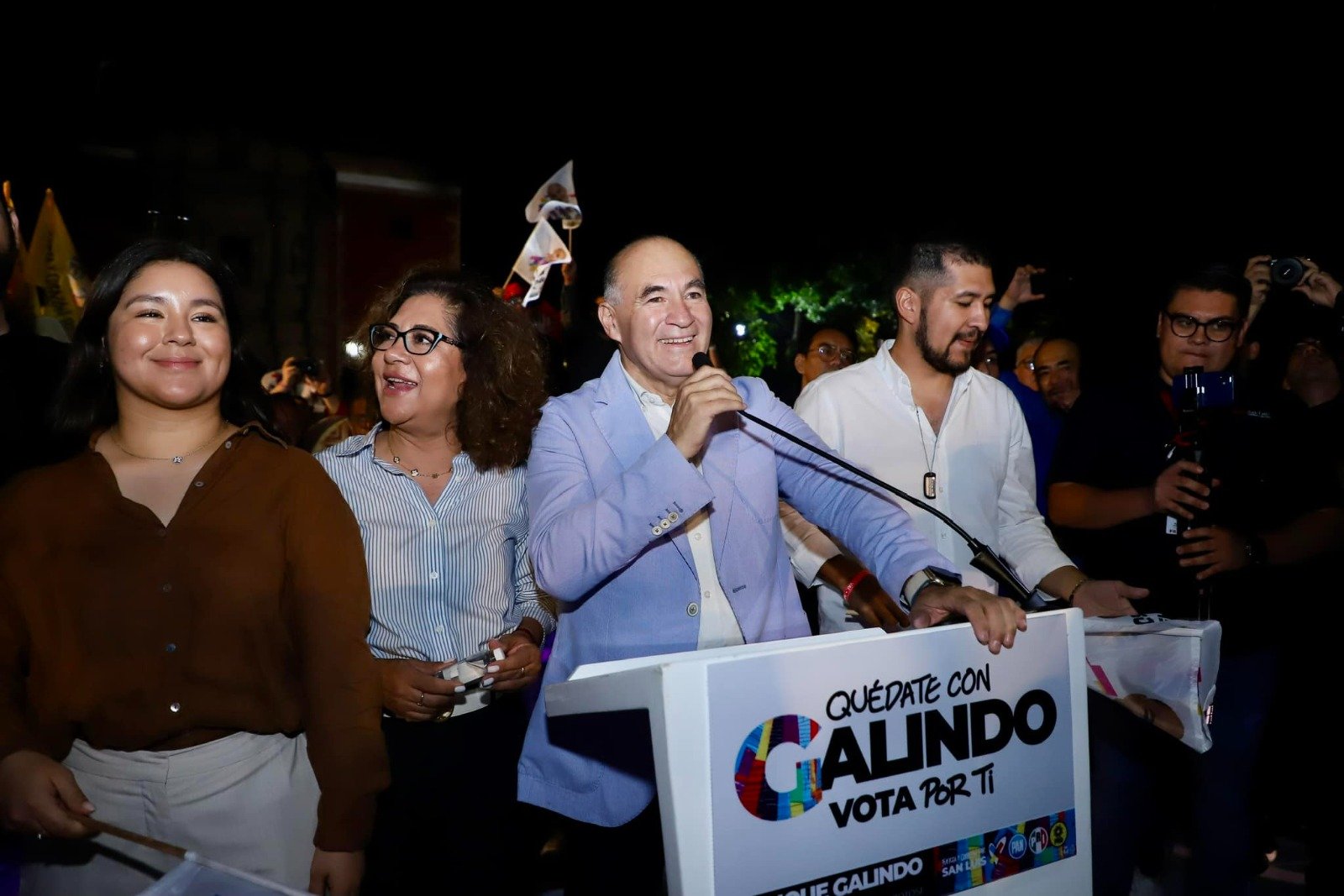 A las y los potosinos que lo apoyan, el candidato del PRI, PAN y PRD, Enrique Galindo Ceballos, les pidió dar todo su esfuerzo en la contienda electoral: “Rechacemos la violencia, no caigamos en ninguna provocación, pero luchemos con actitud, con fuerza, dignos y firmes siempre. Hagámoslo por amor a San Luis, hagámoslo por amor a México, por amor a nosotros mismos, por las niñas, por los niños y por los adolescentes, por las mujeres, hagámoslo por todos, que no quede ningún esfuerzo por rescatar esta hermosa ciudad, este hermoso país y este hermoso estado”.