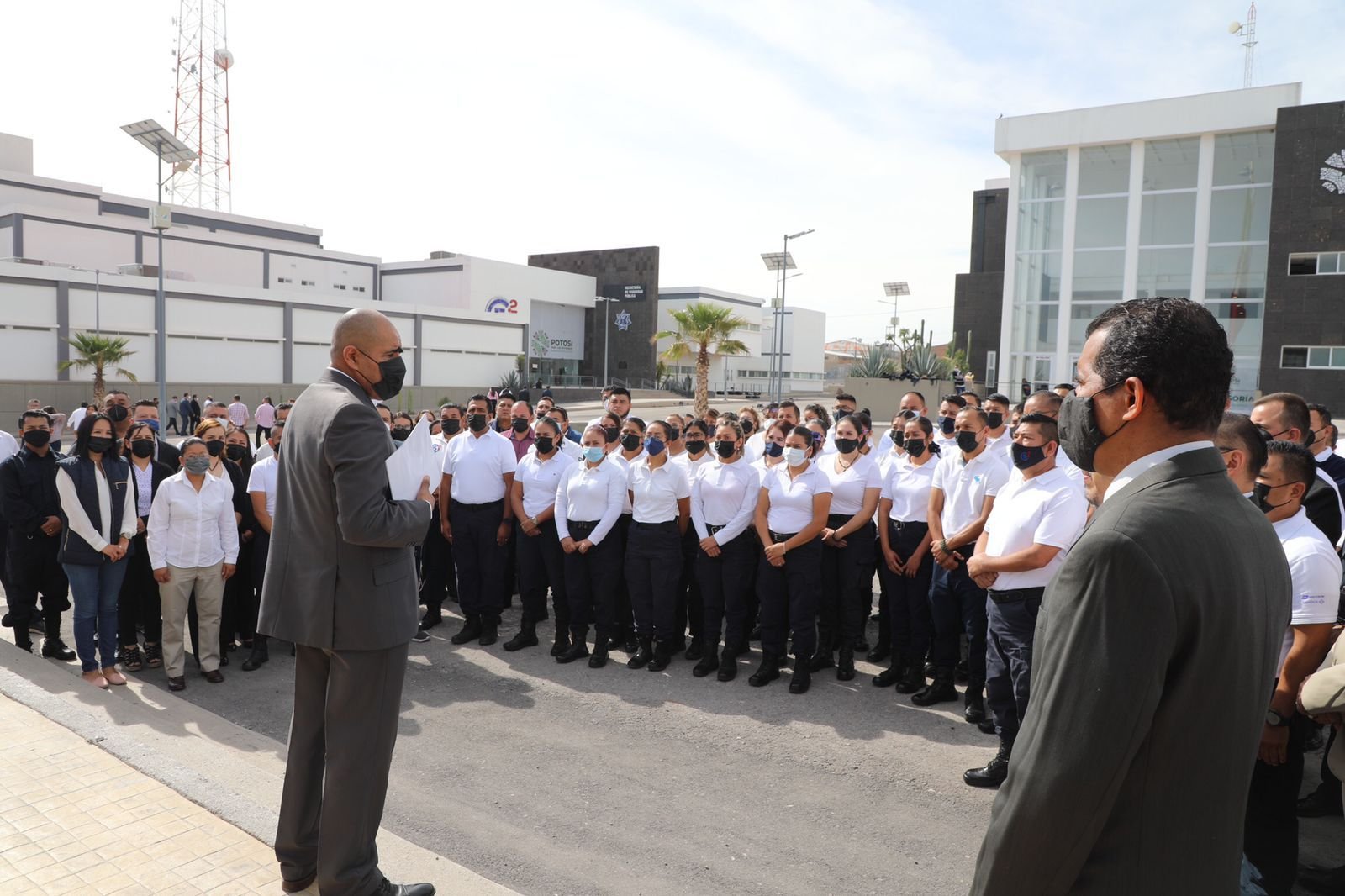 El Secretario de Seguridad y Protección Ciudadana Estatal, General Guzmar Ángel González Castillo le tomó la protesta de ley al nuevo servidor público exhortándolo a realizar en todo momento un trabajo honesto, profesional y con mucha apertura para atender las demandas más apremiantes de las y los potosinos.