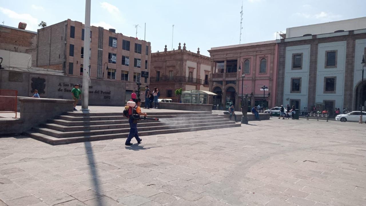 Por instrucciones del alcalde Enrique Galindo Ceballos, la Dirección de Protección Civil Municipal continúa con las acciones de la Brigada de Sanitización, que mantiene sus acciones preventivas de combate a las cadenas de contagio por covid-19 y se refuerza en plazas y espacios públicos, así como en el Aeropuerto Internacional Ponciano Arriaga y la Terminal Terrestre Potosina.
