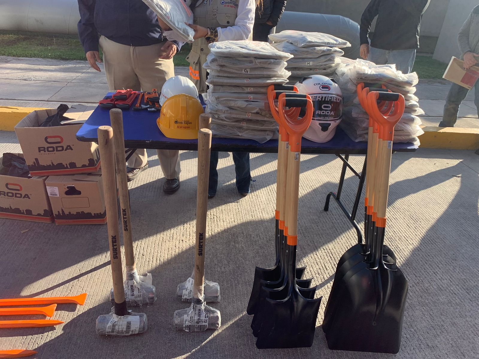 Además de las prendas de trabajo con los logotipos del organismo, también se dotó al personal de palas, marros para romper pavimento, llaves pericas y picos, además de piezas menores para hacer reconexiones.