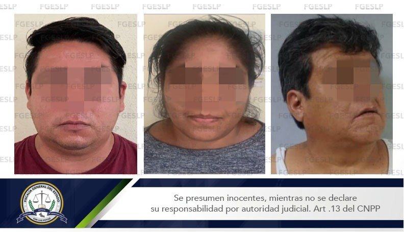 Mireya Adriana “N”, José Gastón “N” y Carlos Armando “N” de 43, 50 y 26 años de edad, respectivamente, fueron detenidos por presuntas lesiones calificadas suscitadas en un domicilio de la colonia Tercera Grande 1 de la ciudad de San Luis Potosí. En tiempo próximo se llevará a cabo la audiencia inicial para este asunto, por lo tanto, los capturados fueron internados en el centro penitenciario de La Pila.