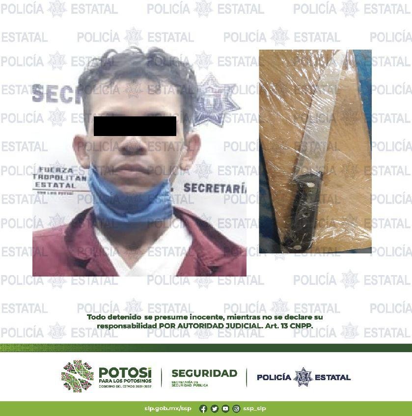 Sergio M., de 31 años de edad fue detenido en posesión de un cuchillo en la colonia Estrella de Oriente. Los hechos ocurrieron en Avenida Gálvez, cuando agentes Estatales se percataron de que el señalado presuntamente intentaba apoderarse de la tubería de cobre de un establecimiento comercial. El detenido y arma prohibida, quedaron a disposición de la Fiscalía General del Estado.