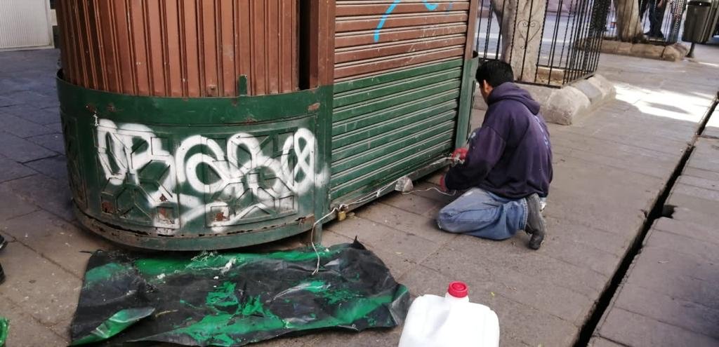 En la recta final del año se han pintado 44 fachadas de inmuebles, 126 cortinas de establecimientos comerciales y 10 puestos de revistas, lo que significa un impacto favorable para la imagen urbana de la zona; además, se han fabricado y colocado 35 tapas de registro y se han limpiado más de 2 mil 250 metros cuadrados de plazas y áreas públicas.