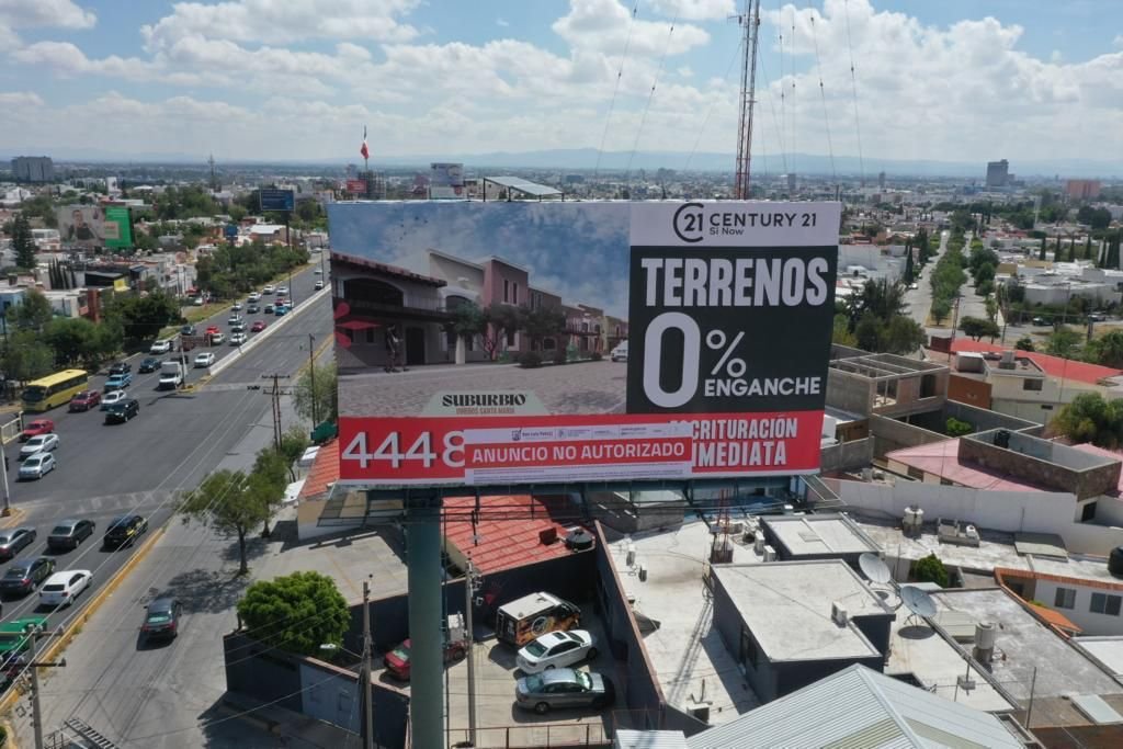La Dirección de Comercio del Ayuntamiento de San Luis Potosí mantiene el Operativo de Ordenamiento Visual, para verificar que los anuncios espectaculares cuenten con las licencias y permisos contemplados en el artículo 48 del Reglamento de Anuncios.
