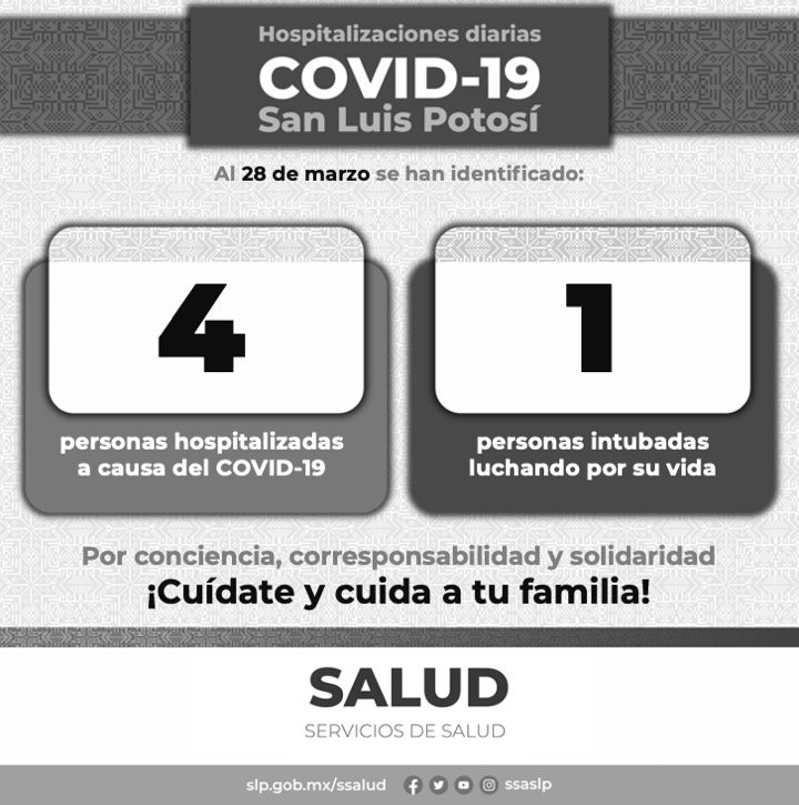 Los Servicios de Salud dan a conocer que este 28 de marzo se registra la cifra más baja de hospitalización por Covid-19, pero los contagios de la enfermedad registran un aumento en la capital y Soledad de Graciano Sánchez.