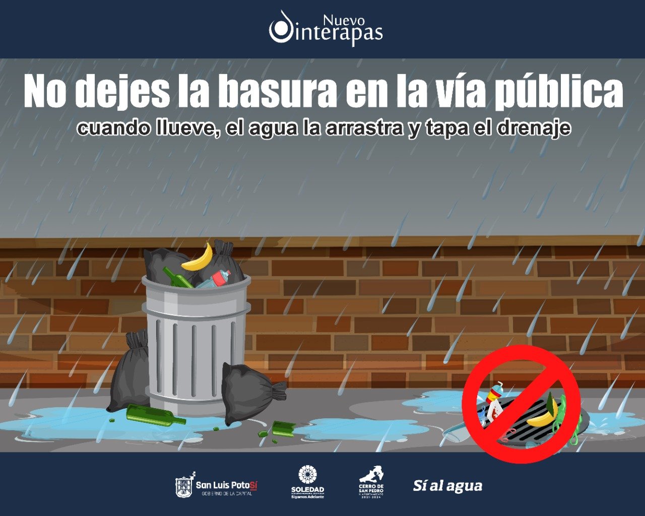 No obstante, el organismo también exhorta a la población a apoyar en las tareas de prevención de inundaciones no tirando basura a los drenajes, ya que eso ocasiona que se obstruyan los ductos y den pie a la salida de aguas negras e inundaciones.