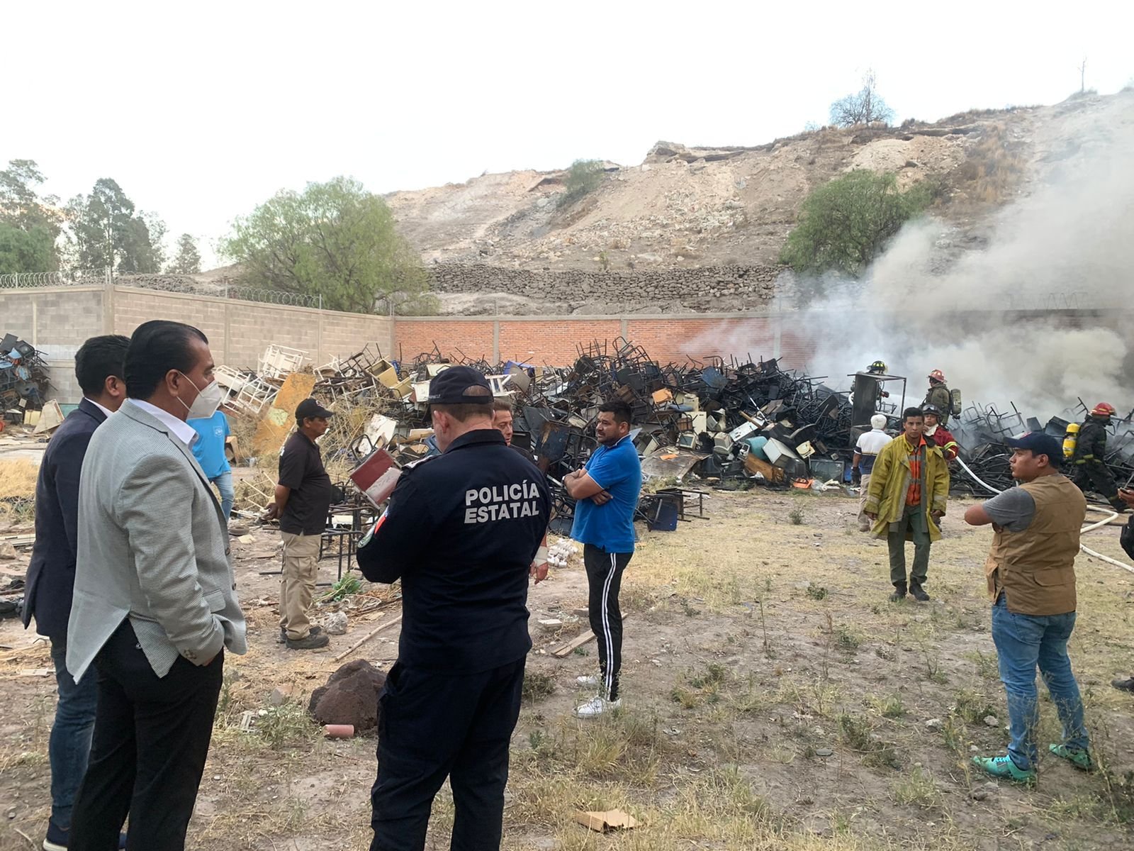 SAN LUIS POTOSÍ, S.L.P.- Derivado de la respuesta inmediata de los cuerpos de emergencia ante un reporte sobre un incendio ocurrido en una bodega propiedad de la Secretaría General de Educación (SEGE), Policías Estatales lograron la detención de cuatro presuntos responsables de allanar dicho lugar y provocar daños.